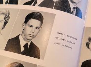 In 1957 Jim and family moved to Alamada in northern California, this is where he started high school, he made friends here and carried on his somewhat odd rebellious behaviour, he was thrown out of Alamada cinema for rowdy behaviour and would test the prefects by walking up a stairway which was marked for downward movement only. When questioned by the students board and asked if he was guilty or not , he pleaded "Not guilty" due to fact he didn't "Have any legs!"