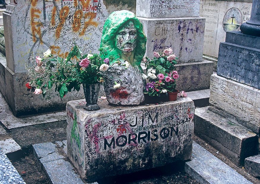 He died in 1971 but it was not until the tenth anniversary of his death in 1981 that a proper headstone and bust were added, previously it had been a simple stone with a strange french writing of "Douglas Morrison James 1943-1971" The bust was very popular until some over zealous fans cut of the nose and sprayed it with graffiti before finally being stolen one night in 1988.