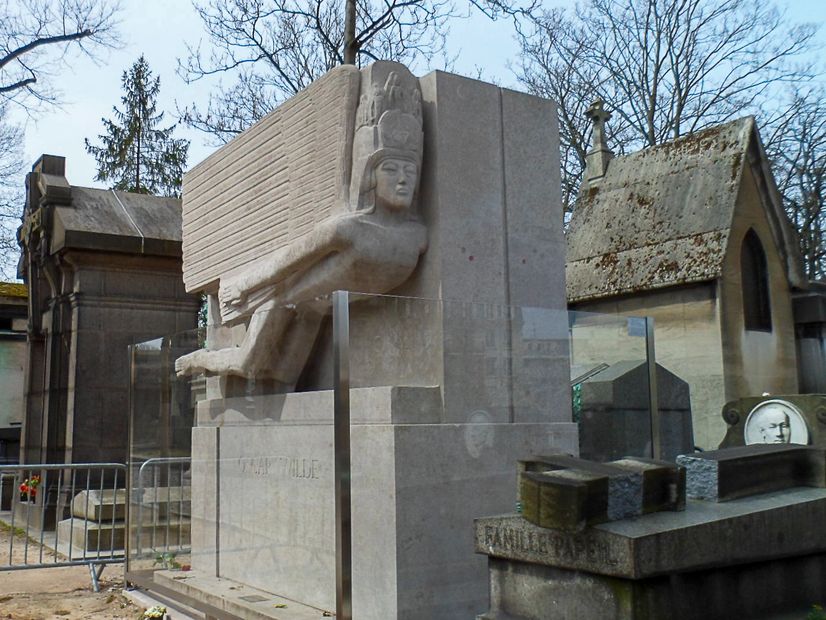 Buried at the top of Pere Lachaise, Oscar Wilde's grave also has barriers and security as it has been vandalised. Being best known for his acclaimed works including 'The Picture Of Dorian Gray' and 'The Importance Of Being Earnest' as well as his blazing wit and infamous imprisonment for sodomy. He lived out his last few years in Paris after rejection by English society. Probably the second most popular grave after Jim Morrison, drawing in poets,artists and bohemians.