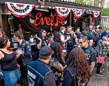 The day before the main festival is dedicated to small Club Shows at local venues in The Downtown area, unfortunately we had missed out on tickets as they quickly sold out online. After letting our breakfasts settle and experiencing some truly outrageous people watching (as anyone knows who has stayed downtown) we decided to carry on with the festivities at the popular funky punky bar named "Evel Pie".